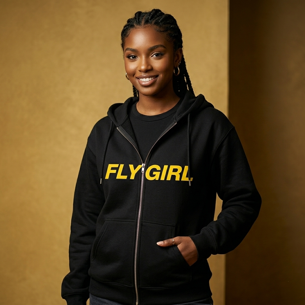 FlyMoves Zip Hoodie — Bold Yellow Logo Full‑Zip Hooded Sweatshirt