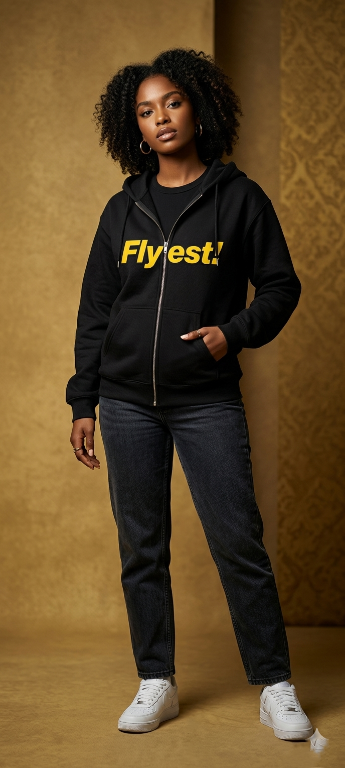 Flyest! Zip Hoodie - Bold Yellow Logo Full-Zip Sweatshirt